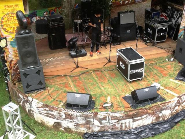 Um caminhão-baú azul deixou a aparelhagem profissional. Que montada ficou esperando as bandas...