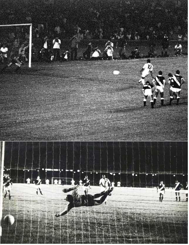 Aos trinta e três do segundo tempo o juiz marcou uma penalidade máxima (até hoje há quem jure que o pênalti foi inventado). O Rei, então, se preparou para executar o tiro penal.